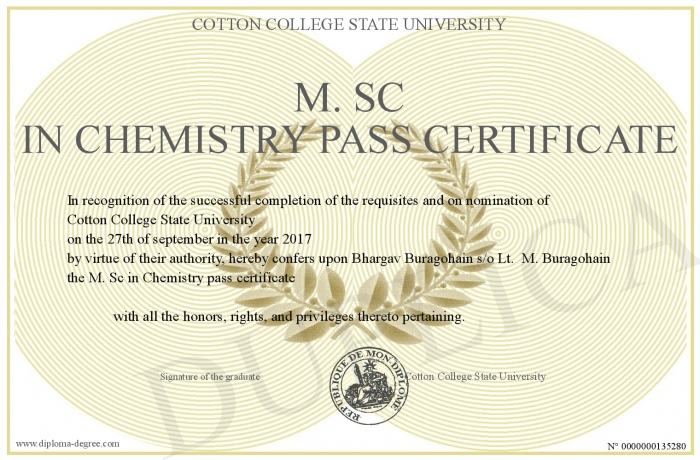 Certificate-degree can have your M. Sc in Chemistry pass certificate