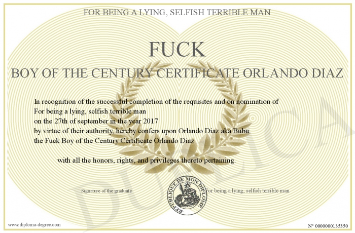 Certificate-degree can have your Fuck Boy of the Century Certificate Orlando Diaz