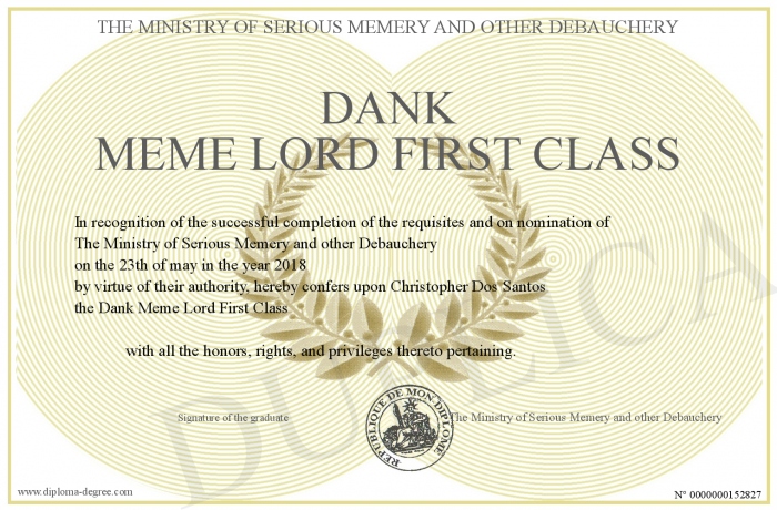 delivered to his owner by The Ministry of Serious Memery and other Debauchery !