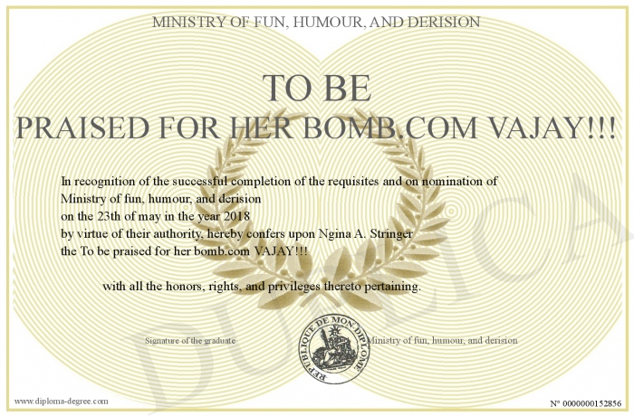 Certificate-degree can have your To be praised for her bomb.com VAJAY!!!