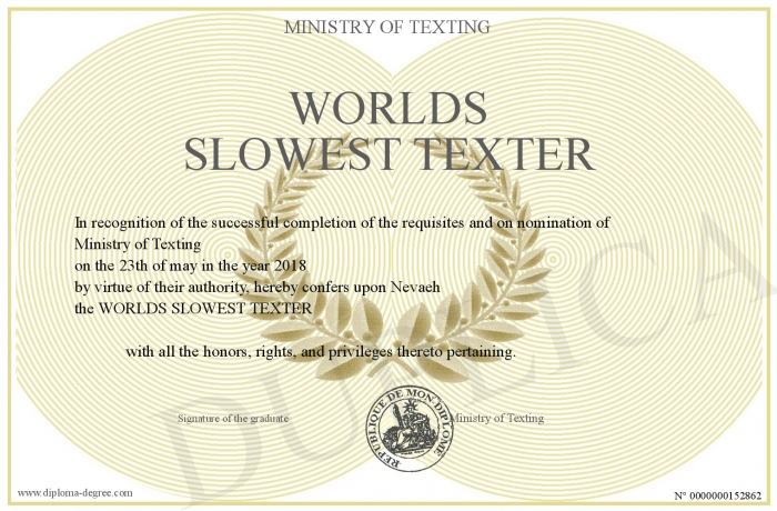 Certificate-degree can have your WORLDS SLOWEST TEXTER