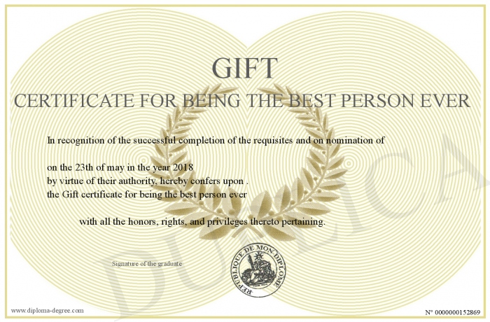 Certificate-degree can have your Gift certificate for being the best person ever