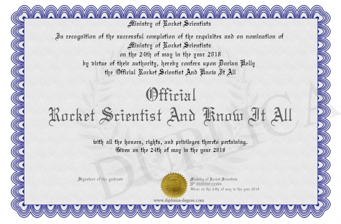 Certificate-degree can have your Official Rocket Scientist And Know It All