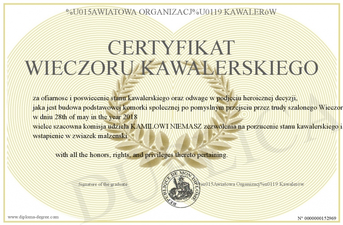 Certificate-degree can have your Certyfikat Wieczoru Kawalerskiego