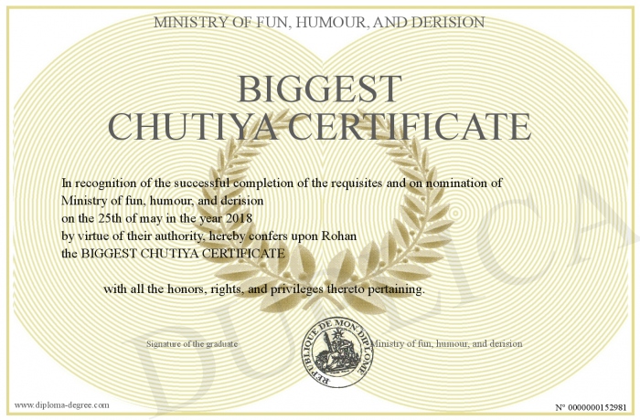 Certificate-degree can have your BIGGEST CHUTIYA CERTIFICATE