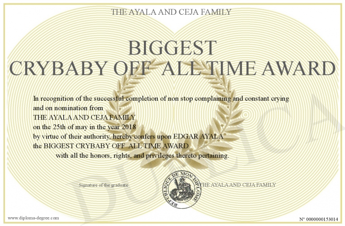 Certificate-degree can have your BIGGEST CRYBABY OFF ALL TIME AWARD