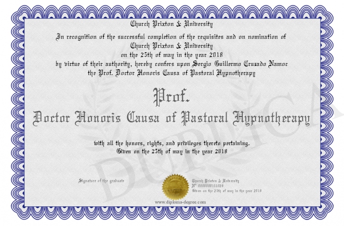 Certificate-degree can have your Prof. Doctor Honoris Causa of Pastoral Hypnotherapy