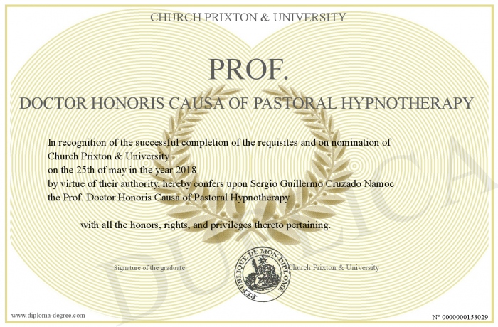 Certificate-degree can have your Prof. Doctor Honoris Causa of Pastoral Hypnotherapy