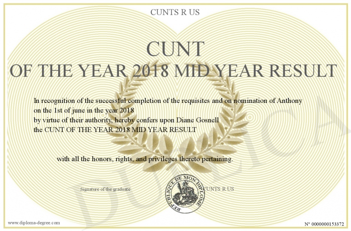 Certificate-degree can have your CUNT OF THE YEAR 2018 MID YEAR RESULT