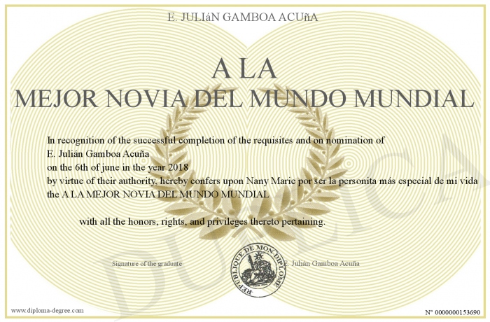 Certificate-degree can have your A LA MEJOR NOVIA DEL MUNDO MUNDIAL