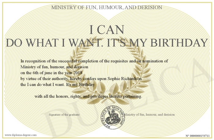 Certificate-degree can have your I can do what I want. It's my Birthday