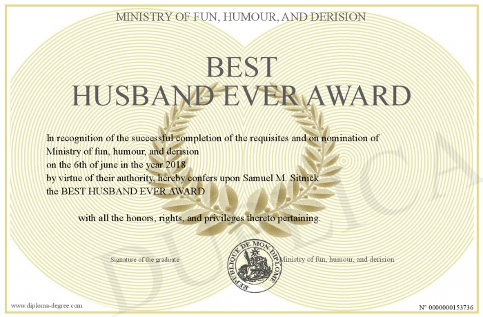 Certificate-degree can have your BEST HUSBAND EVER AWARD