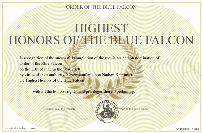 Certificate-degree can have your Highest honors of the Blue Falcon