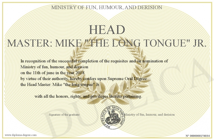Certificate-degree can have your Head Master: Mike -the long tongue- Jr.