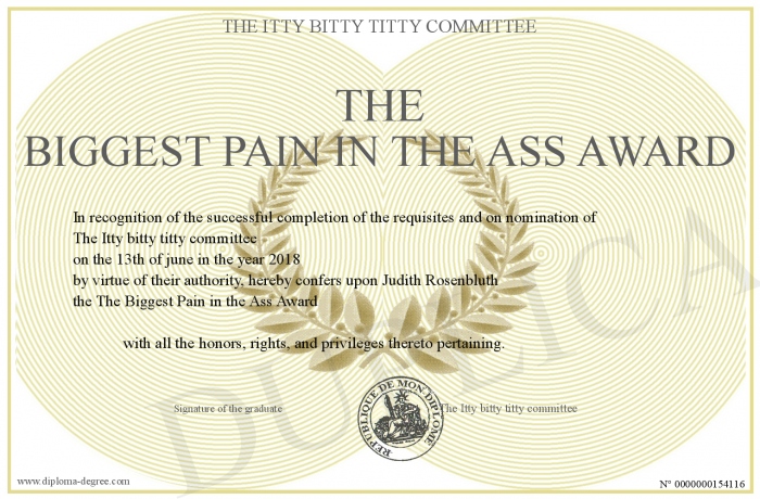 Certificate-degree can have your The Biggest Pain in the Ass Award