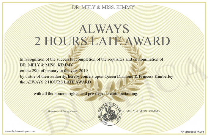 Certificate-degree can have your ALWAYS 2 HOURS LATE AWARD