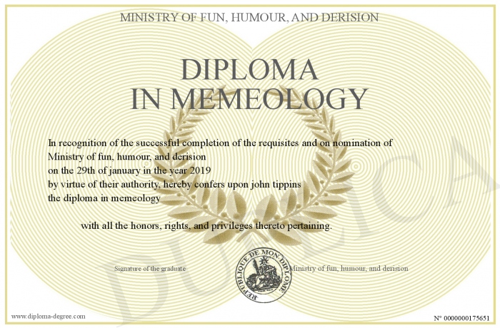 Certificate-degree can have your diploma in memeology
