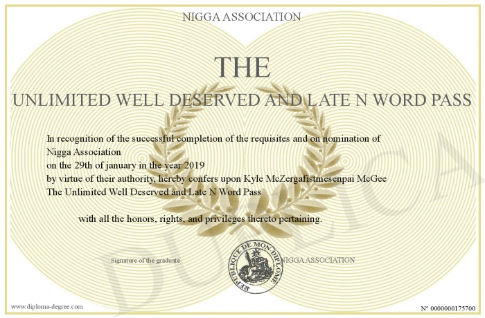 Certificate-degree can have your The Unlimited Well Deserved and Late N Word Pass