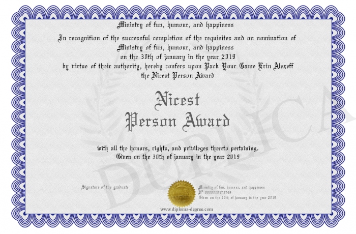 Certificate-degree can have your Nicest Person Award