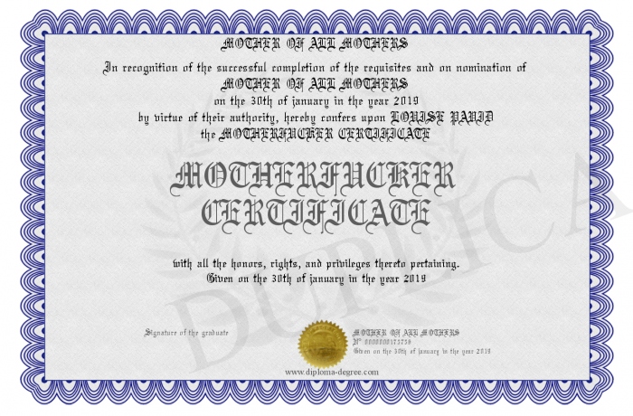 Certificate-degree can have your MOTHERFUCKER CERTIFICATE