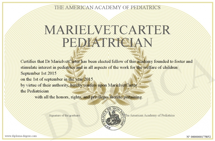 Certificate-degree can have your MARIELVETCARTER PEDIATRICIAN