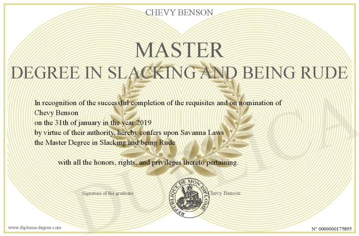 Certificate-degree can have your Master Degree in Slacking and being Rude
