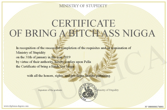 Certificate-degree can have your Certificate of bring a Bitch Ass Nigga