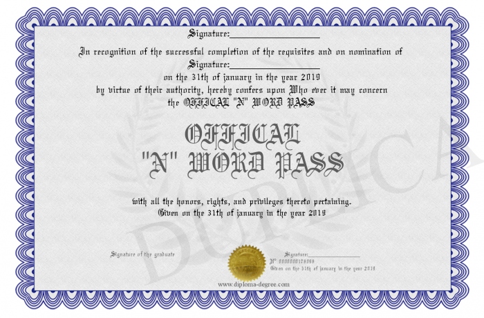 Certificate-degree can have your OFFICAL -N- WORD PASS