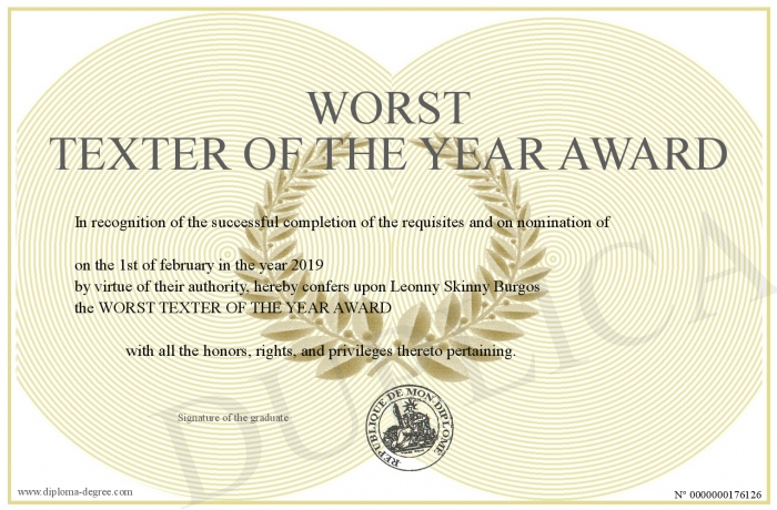 Certificate-degree can have your WORST TEXTER OF THE YEAR AWARD