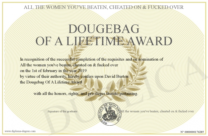 Certificate-degree can have your Dougebag Of A Lifetime Award