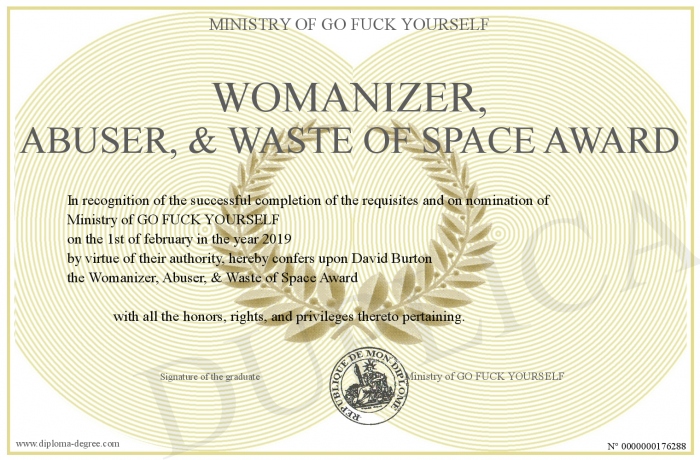 Certificate-degree can have your Womanizer, Abuser, & Waste of Space Award