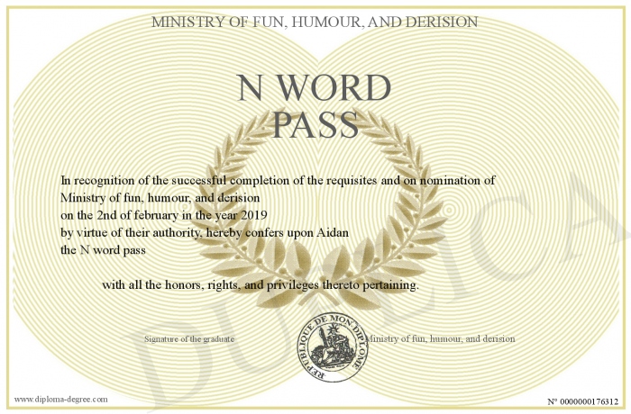 Certificate-degree can have your N word pass