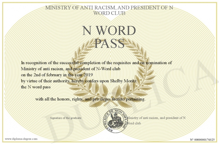 delivered to his owner by Ministry of anti racism, and president of N-Word club !