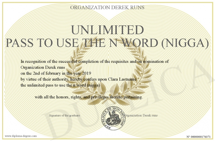 Certificate-degree can have your unlimited pass to use the n word (nigga)