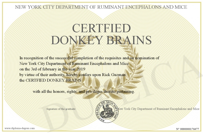 Certificate-degree can have your CERTFIED DONKEY BRAINS