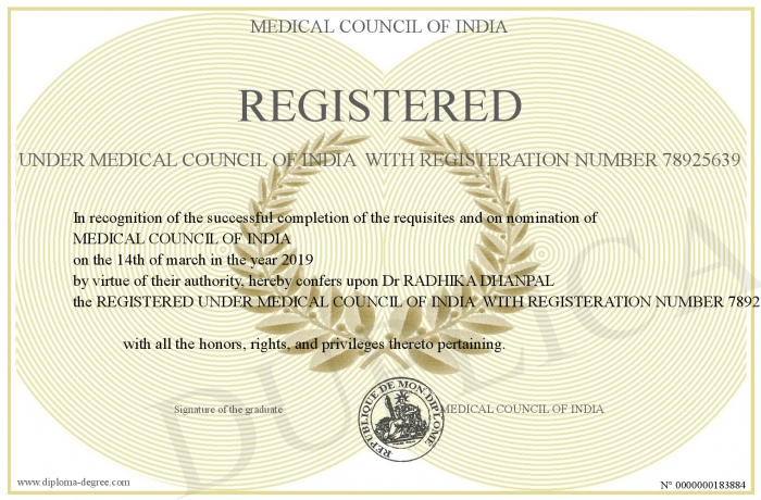 Certificate-degree can have your REGISTERED UNDER MEDICAL COUNCIL OF INDIA WITH REGISTERATION NUMBER 78925639