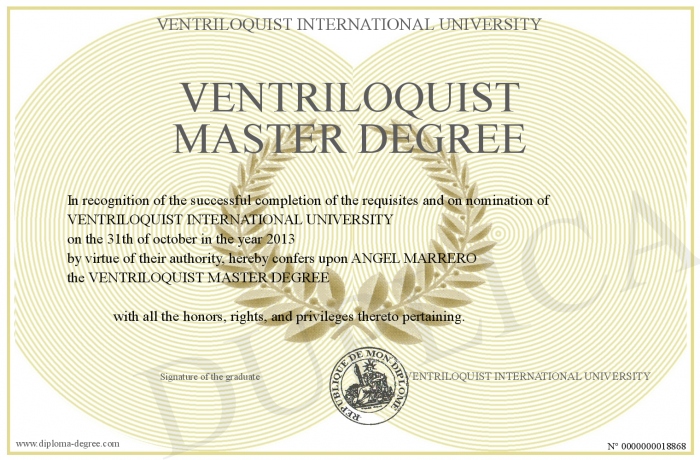 Certificate-degree can have your VENTRILOQUIST MASTER DEGREE
