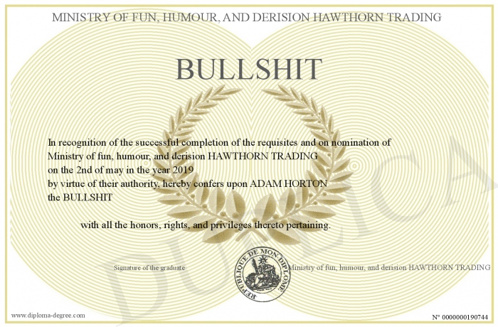 delivered to his owner by Ministry of fun, humour, and derision HAWTHORN TRADING !