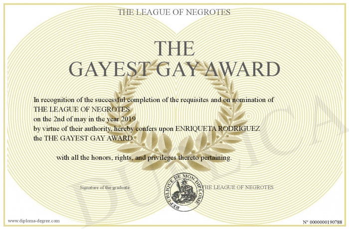 Certificate-degree can have your THE GAYEST GAY AWARD