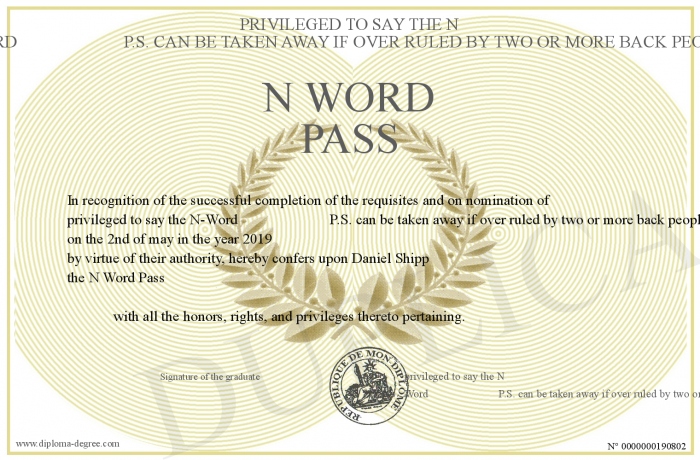 delivered to his owner by privileged to say the N-Word P.S. can be taken away if over ruled by two or more back people !