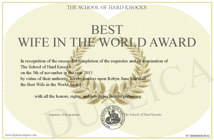 Certificate-degree can have your Best Wife in the World Award