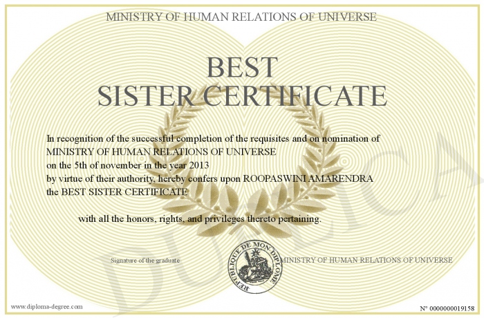 Certificate-degree can have your BEST SISTER CERTIFICATE