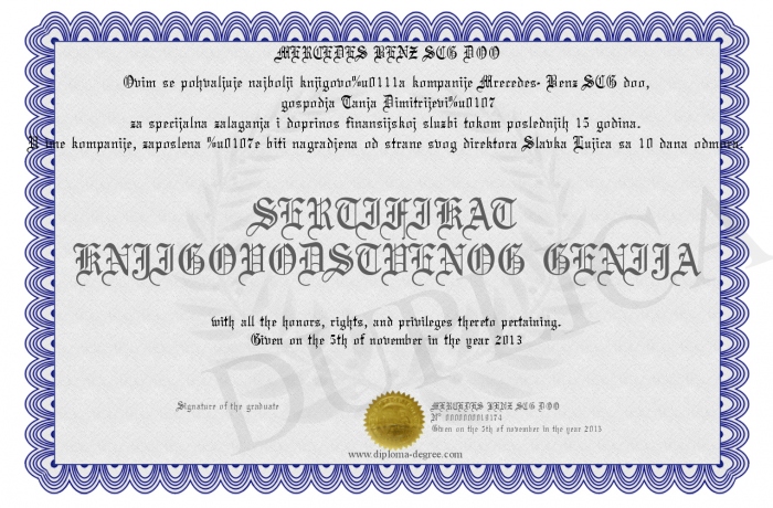 Certificate-degree can have your SERTIFIKAT KNJIGOVODSTVENOG GENIJA