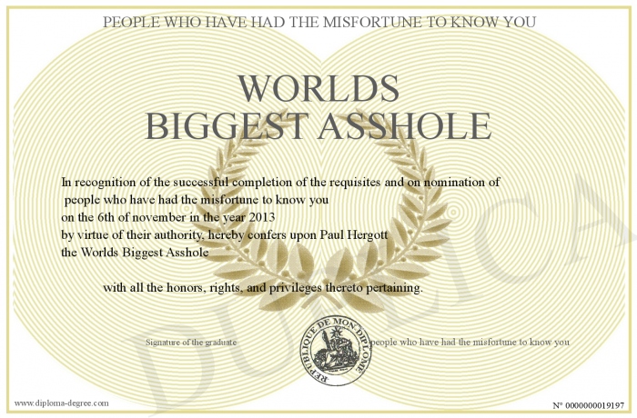 Certificate-degree can have your Worlds Biggest Asshole