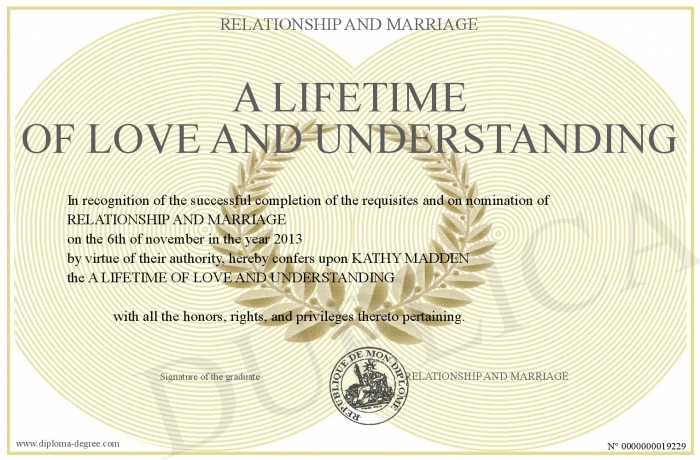 Certificate-degree can have your A LIFETIME OF LOVE AND UNDERSTANDING