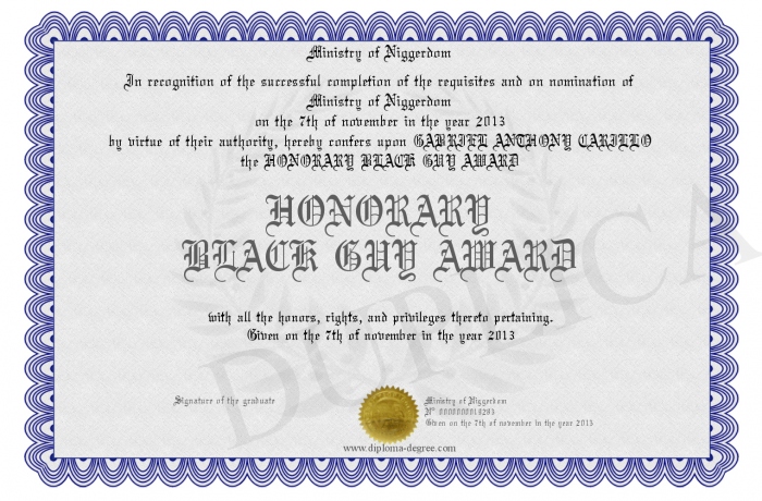 Certificate-degree can have your HONORARY BLACK GUY AWARD