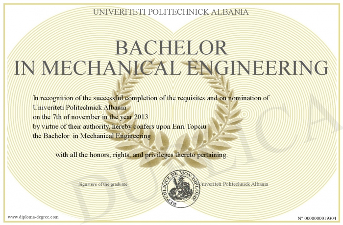 Certificate-degree can have your Bachelor in Mechanical Engineering