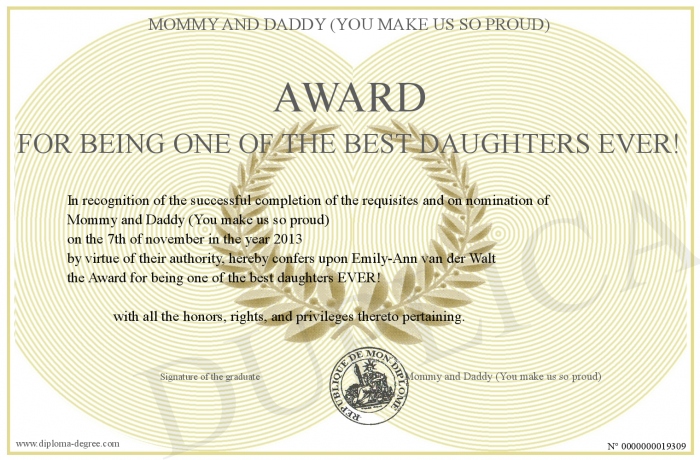 Certificate-degree can have your Award for being one of the best daughters EVER!