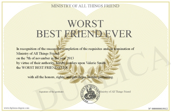 Certificate-degree can have your WORST BEST FRIEND EVER