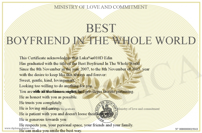 Certificate-degree can have your BEST BOYFRIEND IN THE WHOLE WORLD